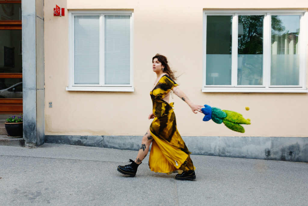 – Tuftningen kom in i mitt liv lite av en slump. När jag började mitt examensarbete 2024 hade jag tänkt göra ett printprojekt med 3D-effekter. Men vi hade tidigare haft en tuftningskurs, och jag blev nyfiken på tekniken. Jag började med att kombinera print och tuftning – tuftningen var först tänkt som en liten accent. Men ju mer jag testade, desto mer fastnade jag. Det slutade med att det tuftade nästan tog över hela projektet. Jag är så tacksam att jag halkade in på det – det känns som att jag hittat helt rätt.