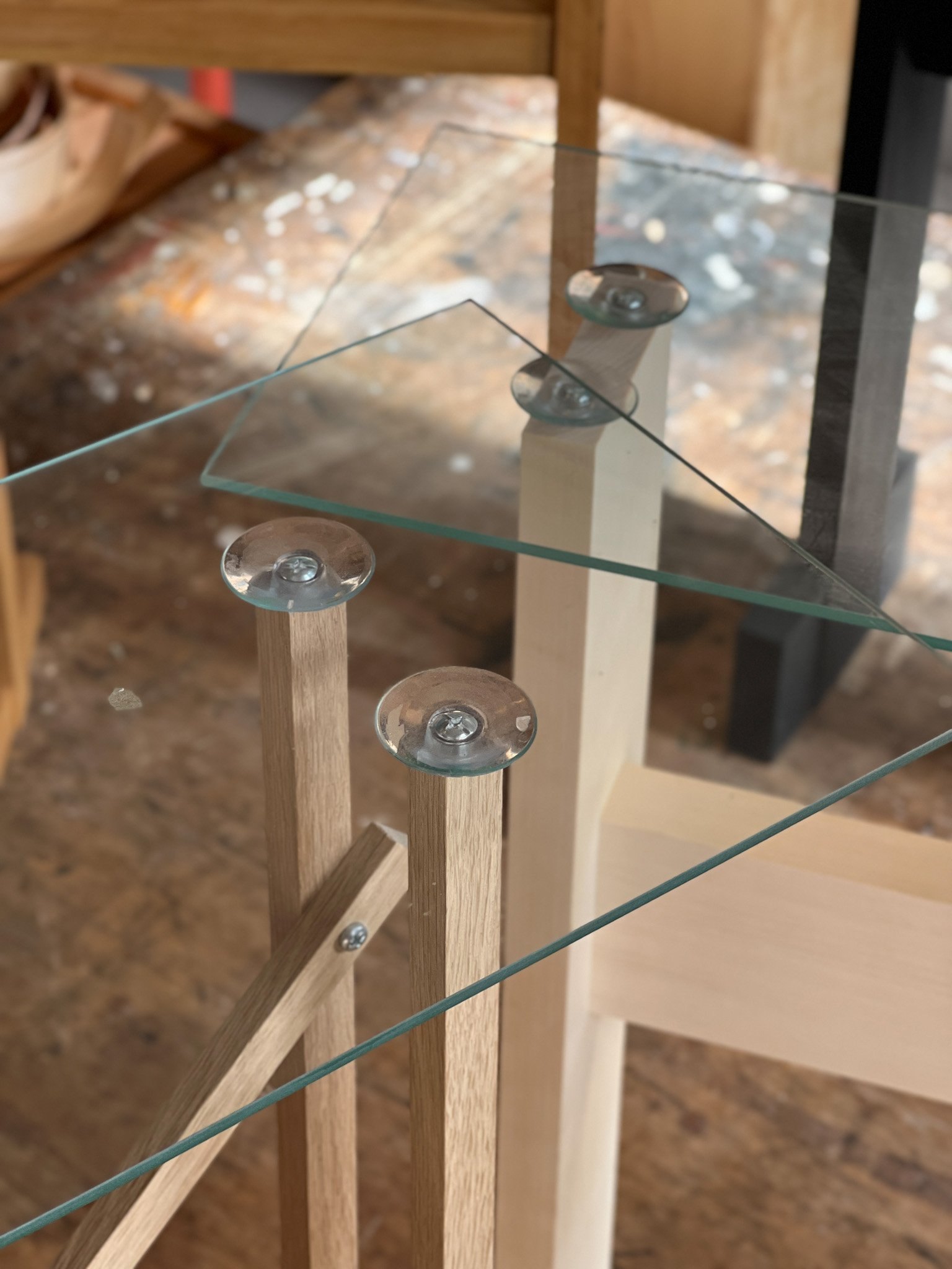 använda sugproppar som fäste mellan skiva och underrede för att skapa ett bord, så var projektet