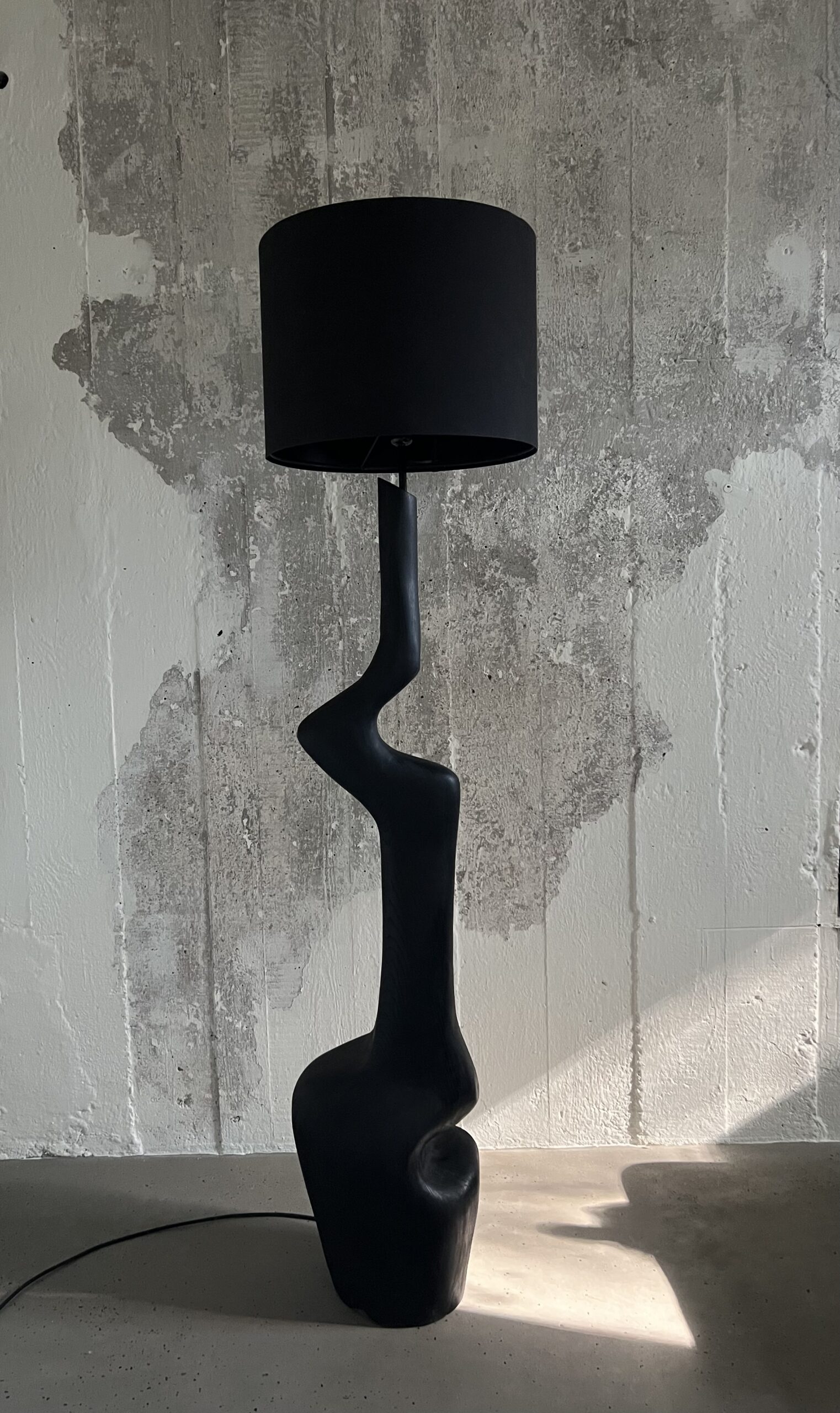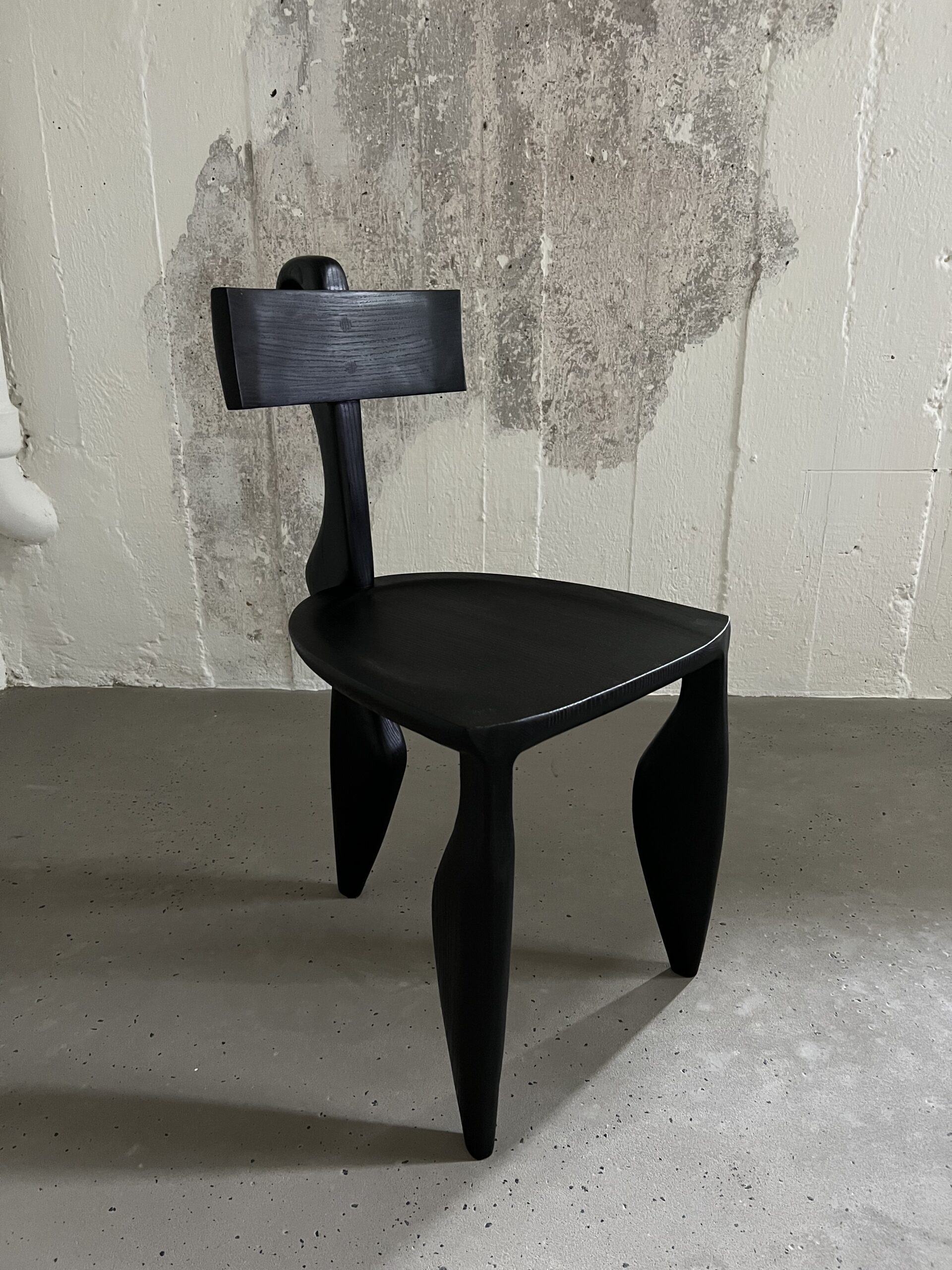 Arbetet resulterade i en mindre kollektion möbler bestående av en golvlampa, stol och ett litet bord som jag skulpterade fram för hand i solid Ask.