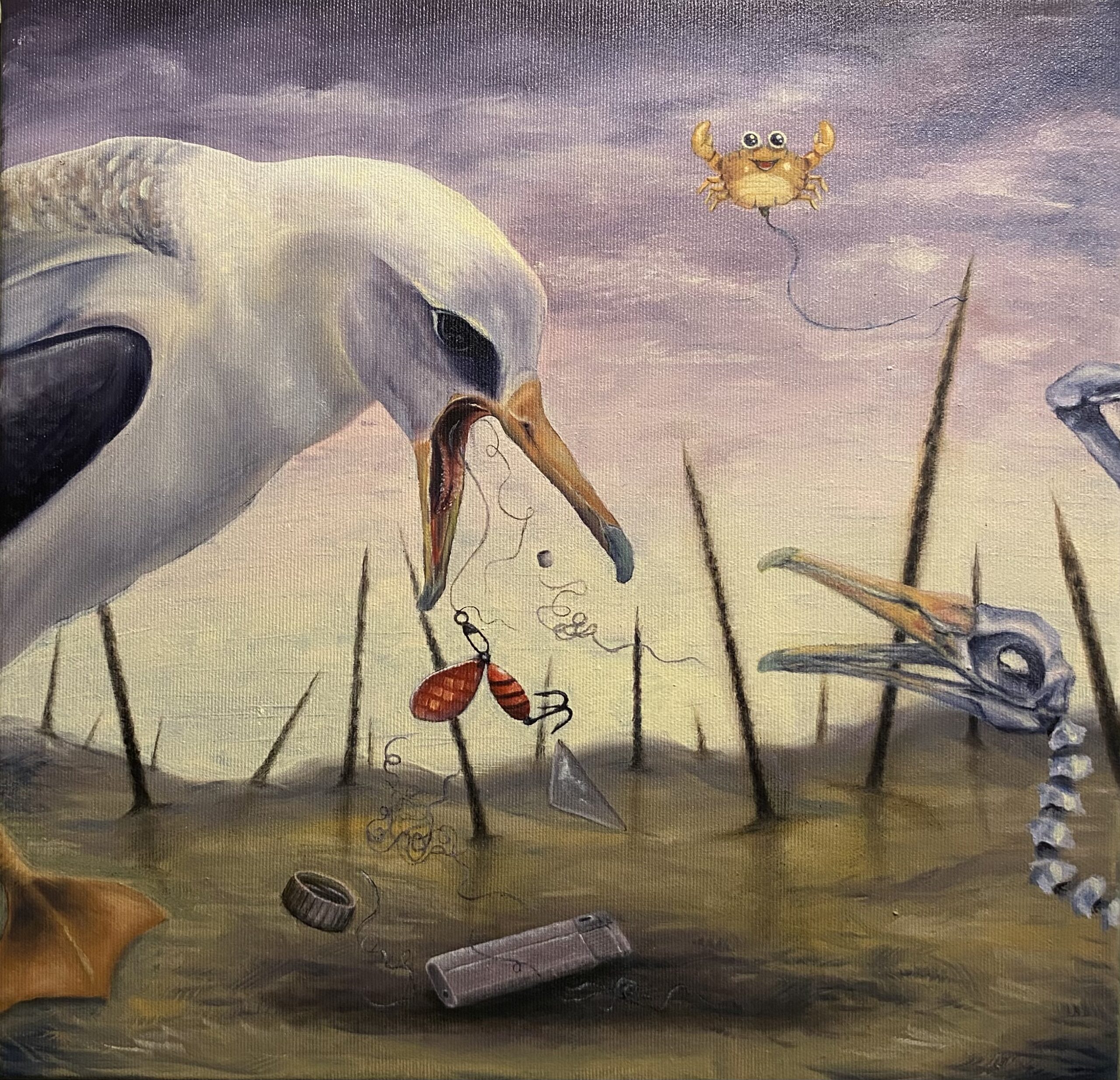 Katarina Andersson är en bildkonstnär vars främsta medium är olja på duk. Hon arbetar figurativt, ofta med mättade färger och organiska former. Målningarna är fyllda av symbolism och öppnar upp fönster till en surrealistisk värld där djurens utgångspunkt står i centrum. Människans antropocentrism utmanas och djuren ges en egen agens.