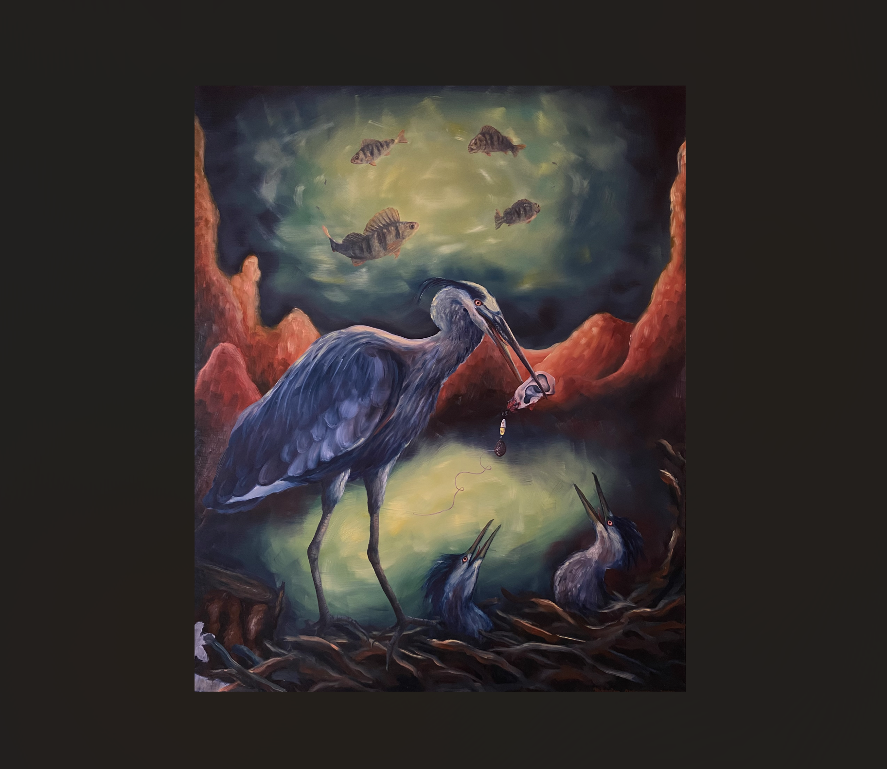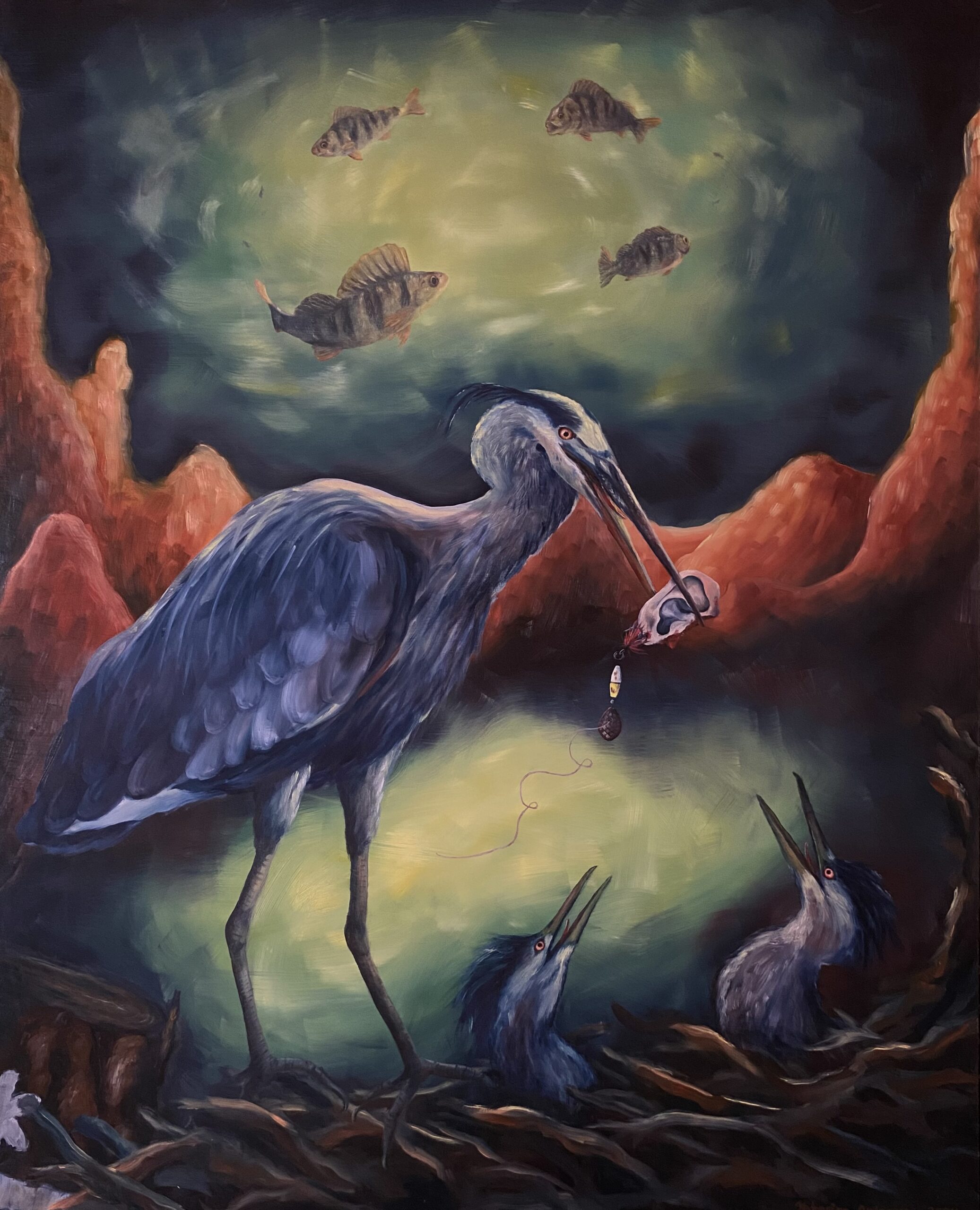 Katarina Andersson är en bildkonstnär vars främsta medium är olja på duk. Hon arbetar figurativt, ofta med mättade färger och organiska former. Målningarna är fyllda av symbolism och öppnar upp fönster till en surrealistisk värld där djurens utgångspunkt står i centrum. Människans antropocentrism utmanas och djuren ges en egen agens.